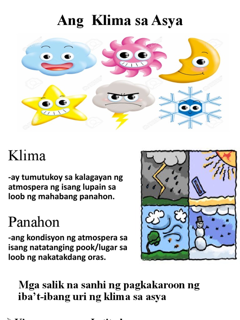 Tropical rainforest climate tropical wet tropical rainforest climate. Dahil sa lawak ng rehiyong into ang mga bansa dito ay nakakaranas ng iba-ibang panahon- mainit na panahon para sa mga bansang nasa mababang latitude malamig at nababalutan naman ng yelo ang ilang bahagi ng rehiyon. Bago pa man dumating ang mga Espanyol ay may mayaman na kultura na ang mga sinaunang pilipino.